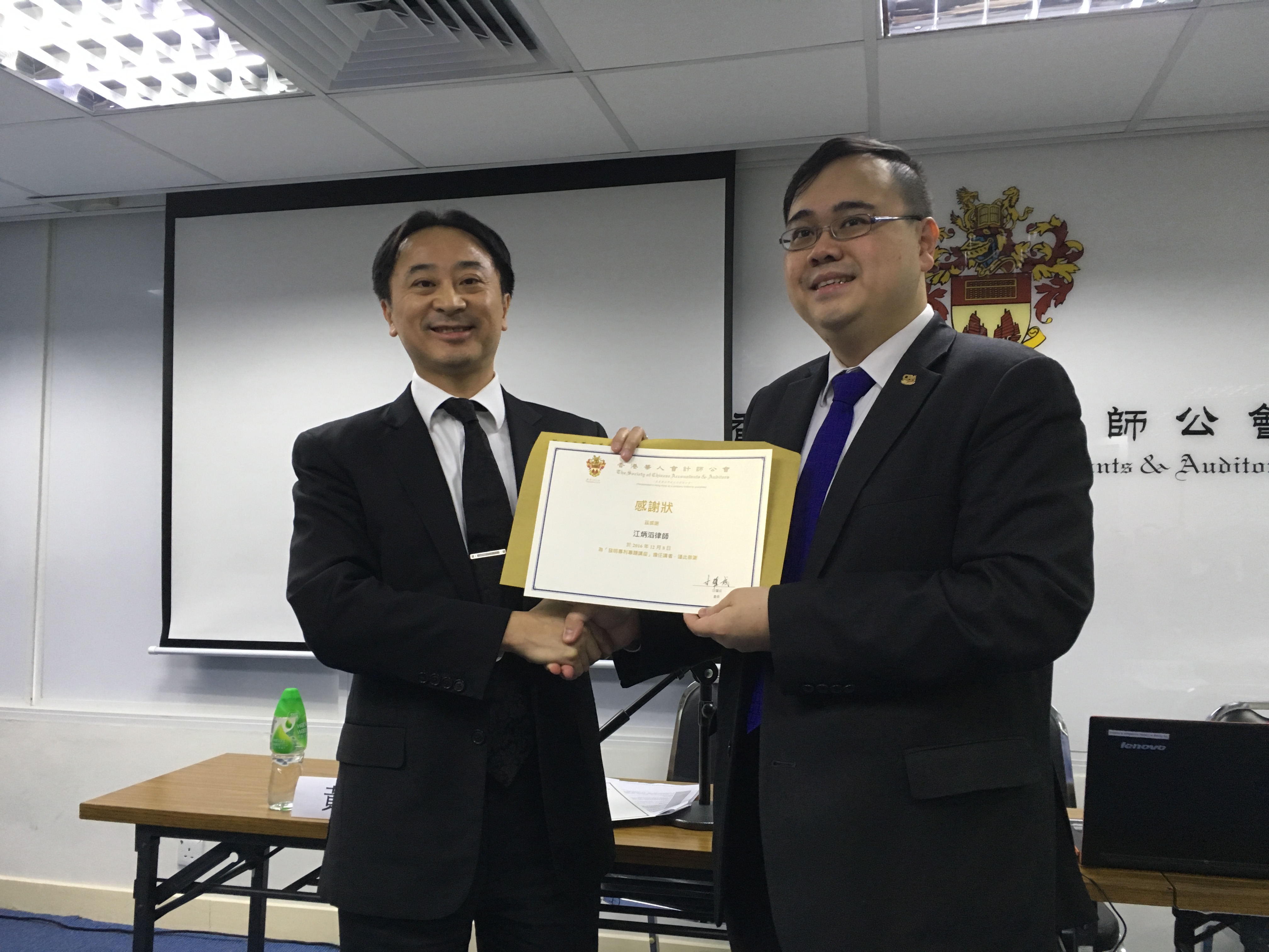 本所江炳滔律師和蔡永杰律師於香港華人會計師公會中發表演講,並獲得感謝狀。